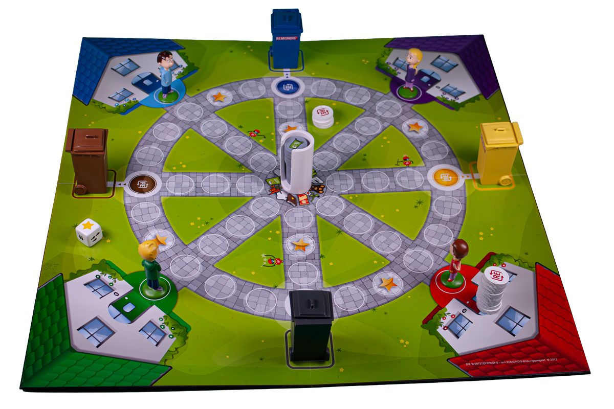 Mit dem Abfall-Lernspiel Wissen vertiefen: Damit der korrekte Umgang mit Wertstoffen auch abseits des Unterrichts weiter trainiert werden kann, gibt es das begleitende Abfall-Lernspiel "DIE WERTSTOFFPROFIS". Sonderanfertigung für REMONDIS Umfang: Spielanleitung, Spielbrett, Spielfiguren, Chips und Würfel Geeignet für bis zu 4 Spieler und ab 6 Jahre Größe: ca. 27 x 27 cm Das liebevoll gestaltete und illustrierte Brettspiel knüpft nahtlos an das Lerntheater-Konzept des spielerischen Lernens an. Dass dabei der Spaß nicht zu kurz kommt, versteht sich von selbst. Das Spiel folgt gängigen Spielabläufen und ist für bis zu vier Spieler im Alter über sechs Jahre geeignet. Ziel ist es, den Wertstoffprofis zu helfen, die gesammelten Abfälle korrekt zu trennen.